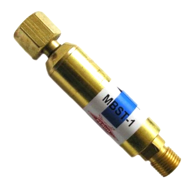 Mini-bezpiecznik tlenowy firmy PERUN (MBST-1), służy do zabezpieczenia instalacji gazowej zasilającej palnik przed skutkami cofnięcia płomienia. Zapobiega przepływowi gazu w kierunku przeciwnym od normalnego kierunku przepływu. Bezpiecznik posiada dwa gwinty 1/4.