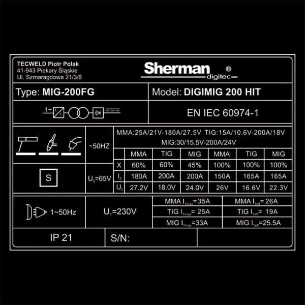 | Max pobór mocy TIG [kVA] | 3,6 |