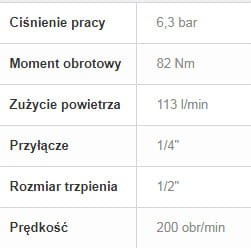 Moment obrotowy 82Nm