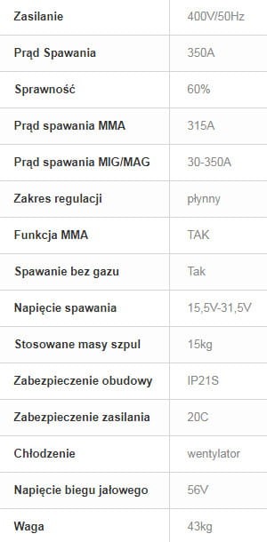 Półautomat spawalniczy MIG 351 MMA jest profesjonalnym urządzeniem przeznaczonymi do ręcznego, elektrycznego spawania stali niskowęglowej, niskostopowej (MAG), stali stopowych (MIG) oraz aluminium i jego stopów.