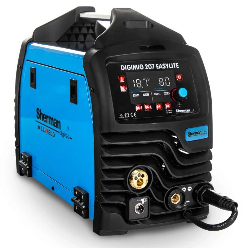 Uniwersalny migomat DIGIMIG 207 EASYLITE (Sherman) łączy tryby spawania MMA, TIG Lift DC i synergiczne MIG/MAG do spawania stali, aluminium, nierdzewki.
