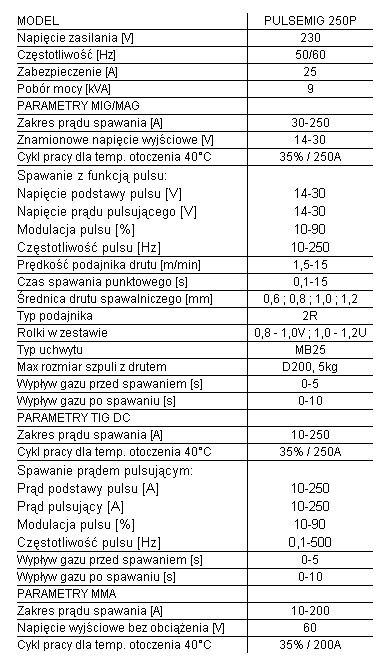 - spawarkę Welder Fantasy TIG, MIG/MAG, MMA PULSEMIG 250P/1,