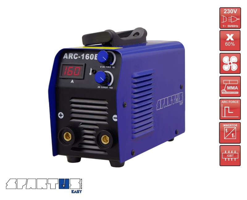 SPARTUS Easy ARC160E. To niewielkich rozmiarów spawarka elektrodowa, skonstruowana w oparciu o technologię inwertorową. Zasilana jest z sieci jednofazowej 230V.