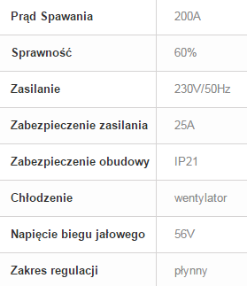 Urządzenie charakteryzuje się dużą sprawnością 200A/60%.