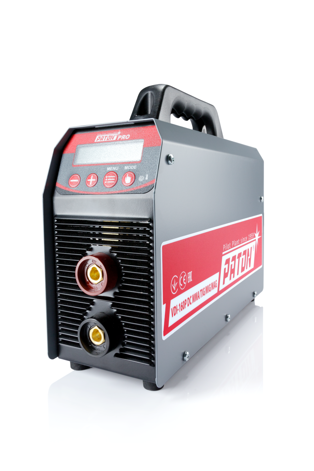 Cyfrowa spawarka inwertorowa PATON™ VDI-160Р przeznaczona jest do ręcznego spawania łukowego elektrodą otulona metodą „MMA”, spawania łukowego w osłonie gazów metodą „TIG” oraz półautomatycznego spawania łukowego metodą „MIG/MAG" (jako źródło w zestawie z zewnętrznym podajnikiem) prądem stałym (DC). Zasilanie 230V, prąd spawania 160A. Urządzenie objęte jest 5-letnią gwarancją producenta!