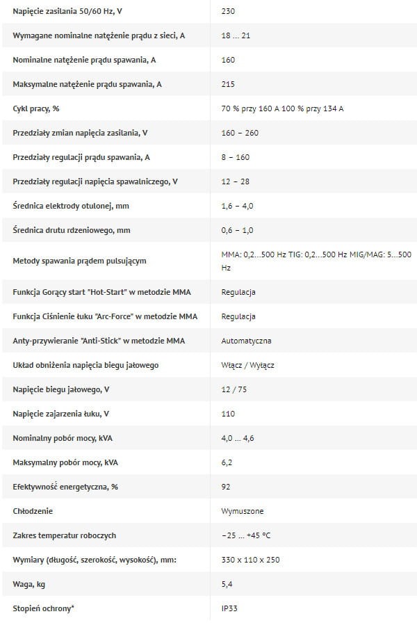 - Szerokie możliwości regulacji parametrów spawania: