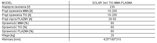 Spawarka NOVEL SOLAR 3w1 TIG MMA PLASMA to profesjonalne zintegrowane multifunkcyjne urządzenie spawalnicze umożliwiające spawanie metodą TIG DC i MMA oraz ręczne cięcie plazmowe z mocą 50A (do 18mm).