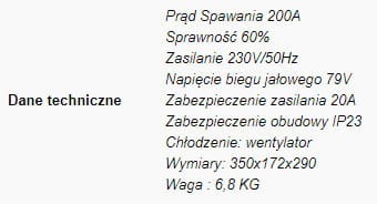 - Możliwość spawania elektrodami w średnicach: 2.5-5.0mm wraz z elektrodami zasadowymi.
