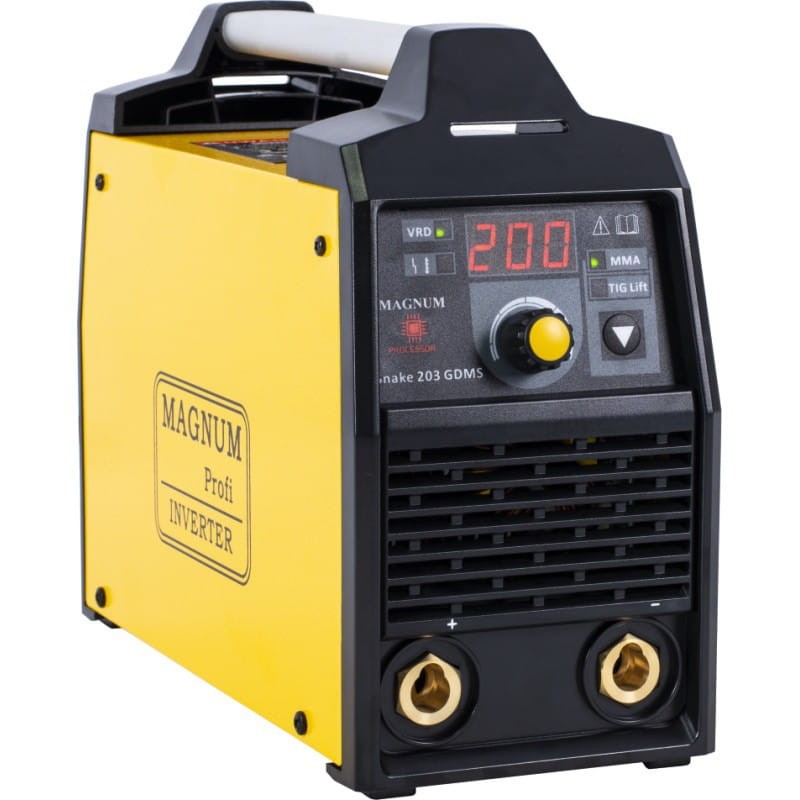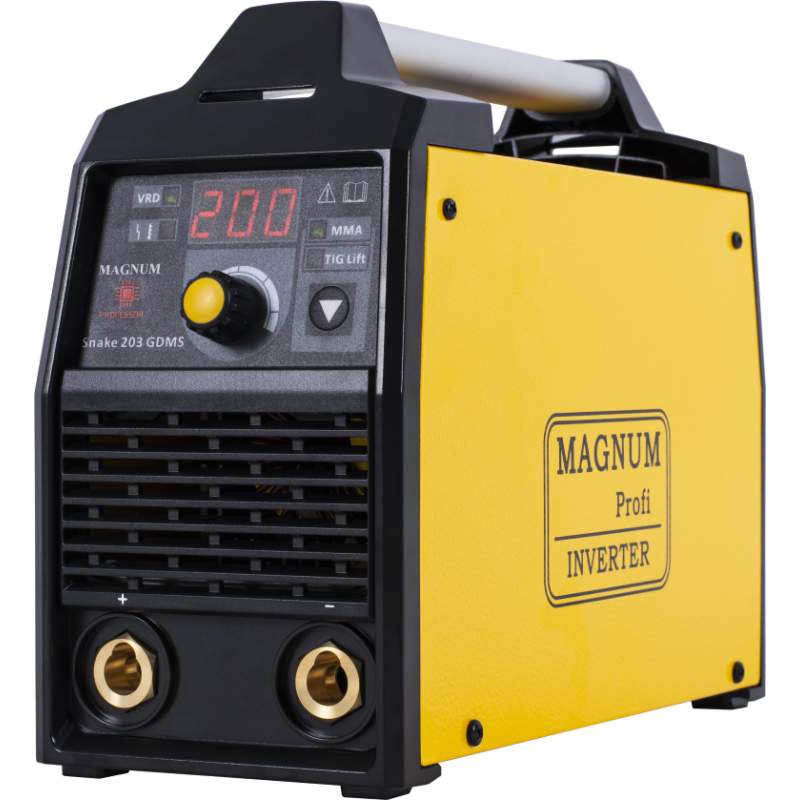 Spawarka Snake 200 GDMS wyposażona w inwerterowe źródło zasilania przeznaczona jest do spawania metodą MMA wszystkimi gatunkami elektrod otulonych (rutylowe, zasadowe, celulozowe, kwaśne ). SNAKE 203 GDMS umożliwia również spawanie metodą TIG wykorzystując funkcje LIFT.
