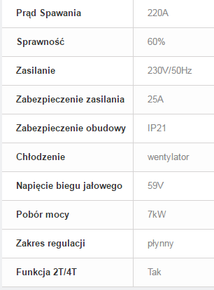 Urządzenie służy również do spawania metodą MMA - elektrodami otulonymi.