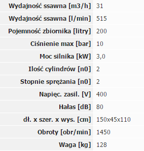 -Sprężarki tłokowe w których silnik jest połączony poprzez przekładnię pasową z agregatem sprężarkowym. -Sprężarka wyposażona w elektryczny kabel przyłączeniowy zasilanie 400V/50Hz.