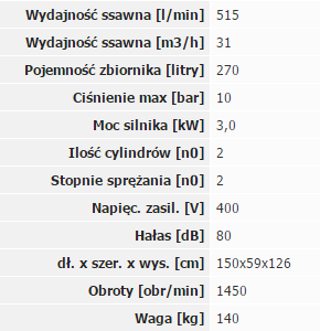 -Sprężarka wyposażona w elektryczny kabel przyłączeniowy zasilanie 400V/50Hz.