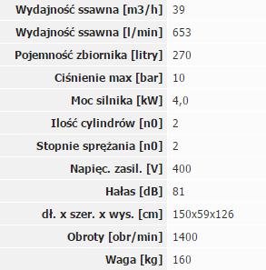 -Sprężarka wyposażona w elektryczny kabel przyłączeniowy zasilanie 400V/50Hz.