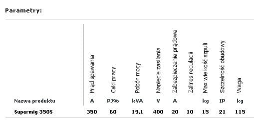 - dodatkowe wyposażenie (reduktor, tarcza spawalnicza, młotek spawalniczy,wtyk, rolki)