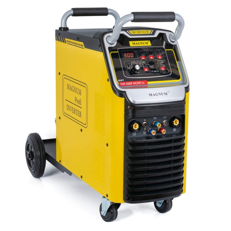 THF 335P AC/DC V2 to zaawansowana spawarka inwertorowa klasy profesjonalnej, przeznaczona do ręcznego spawania metodą TIG z wykorzystaniem prądu przemiennego (AC) i stałego (DC). Dodatkowo umożliwia pracę w trybie MMA, przy użyciu elektrod otulonych.