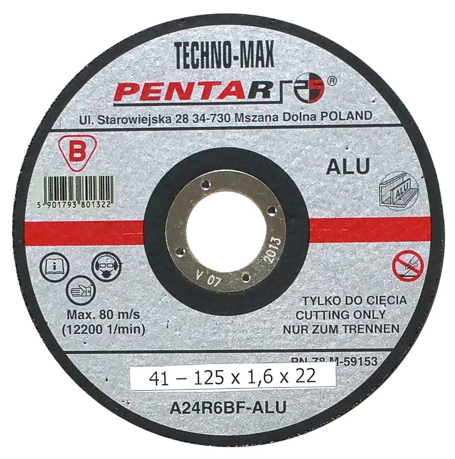 Tarcza do cięcia aluminium 125x1,6x22 ALU Pentar