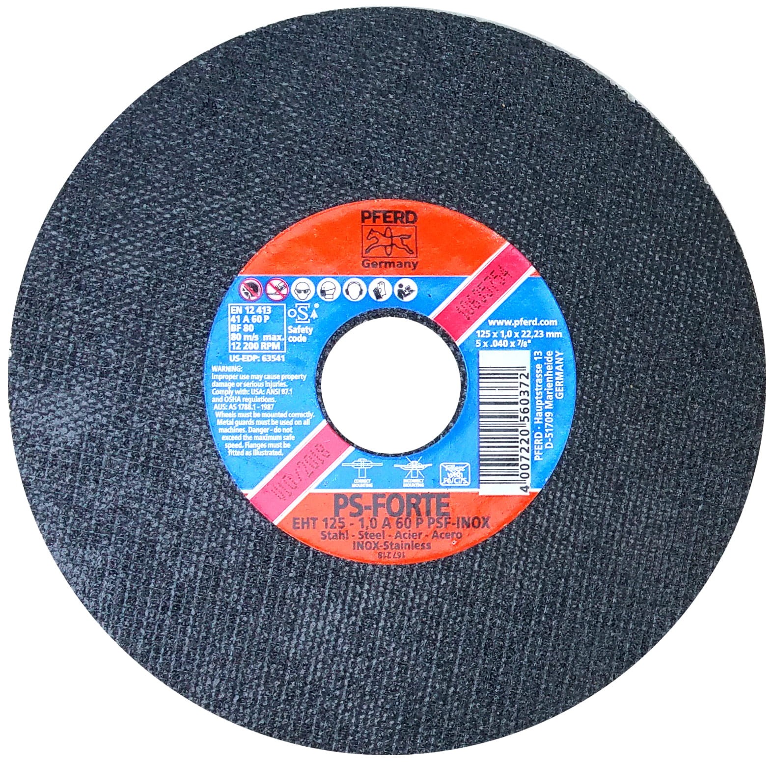 Tarcza do cięcia stali nierdzewnej PS-FORTE (ściernica płaska 41) 125 x 1,0 x 22 firmy PFERD.