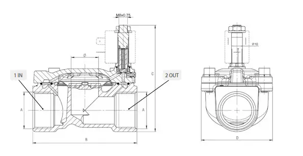 Zawór elektromagnetyczny membranowy 2/2 NC, G 1/2, NBR, DN14, normalnie zamknięty FL04F05114N0